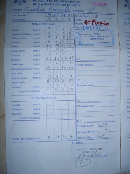 para el canario de canto Timbrado Español. Posicionadas en el