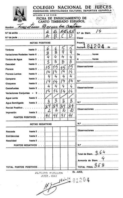 considere que mis equipos de canarios dispongan de un canto bastante